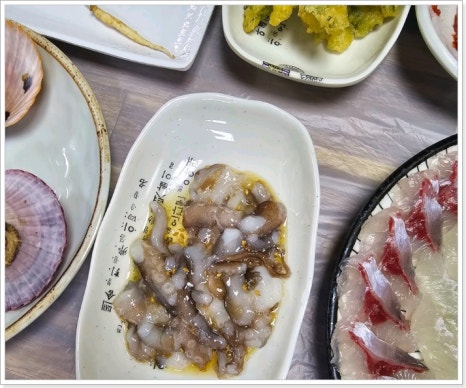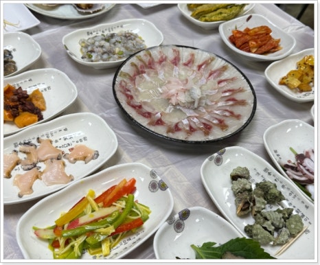 계절에 따라 멍게, 미역, 전복, 해삼, 낙지, 굴 등 다양한 해산물이 제공됩니다.