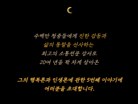 지친 일상 속 당신에게 필요한 단 한 번의 울림을 놓치지 말기 바랍니다. 지금 예매 버튼 하나로 인생 강연을 경험해보시길 바랍니다.