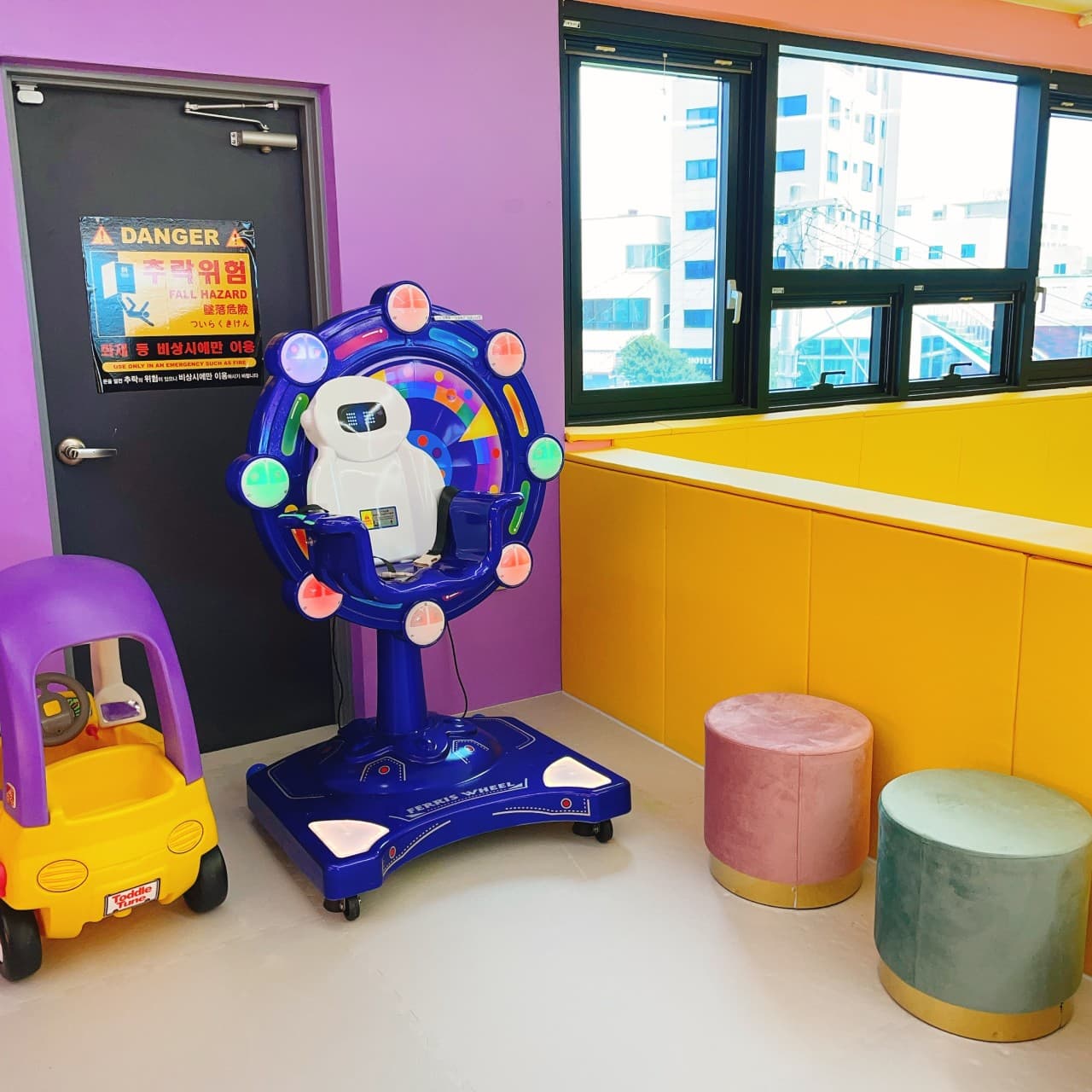 - 볼풀장, 미끄럼틀, 낚시게임 등 다양한 놀이시설