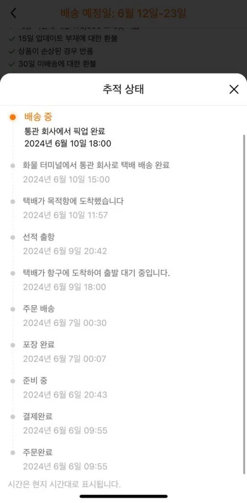 배송은 평균 7~14일 내에 도착합니다. 간혹 5일 만에 도착하는 경우도 있으니 참고하시기 바랍니다. 무료배송은 기본이고, 일부 상품은 빠른 배송 옵션도 선택이 가능합니다. 모바일 앱에서 실시간 배송 조회도 가능해 매우 유용합니다.