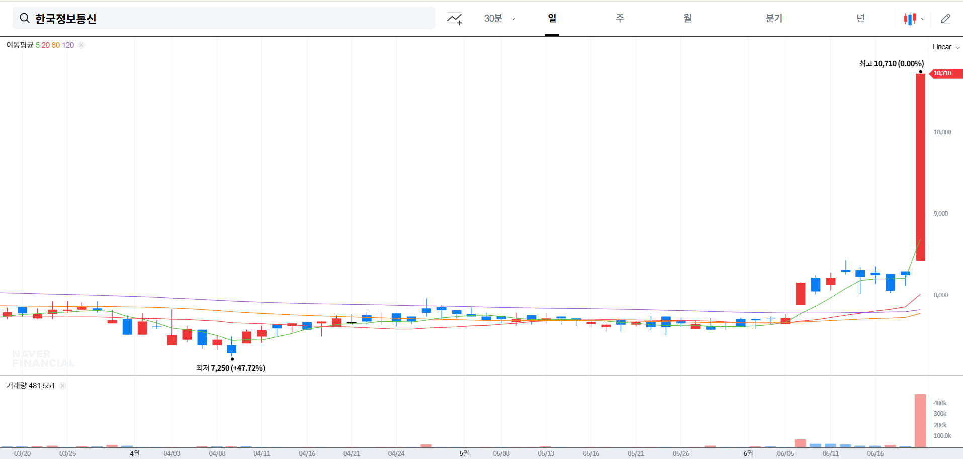 - 6월 10일: 60일선 골든크로스 발생