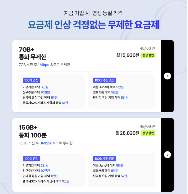특히 셀프개통을 지원해 매장 방문 없이 온라인으로 간편하게 개통 가능하며, 누구나 쉽게 저렴한 요금제를 선택할 수 있습니다.