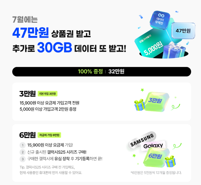 7월 한정, 통신3사 특별 혜택을 놓치면 후회할 수도 있습니다! 지금 바로 알뜰한 통신생활을 시작해보세요. 리타겟 이벤트로 더 큰 혜택을 잡을 수 있는 기회, 궁금하지 않으신가요? 7월 통신3사