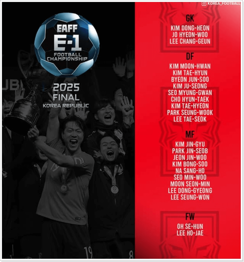 A. A매치 데이가 아니기 때문에 유럽파 선수들의 출전 의무는 없으며, 대부분 K리그 및 J리그 선수들로 구성됐습니다.